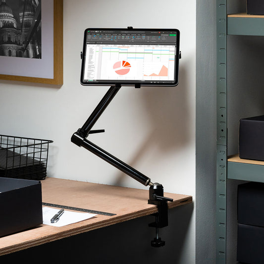 Click keeps your tablet secured and charged, undocking at the press of a button. You can also lock Click with a key to disable the quick release button, securing your tablet or iPad in place.
