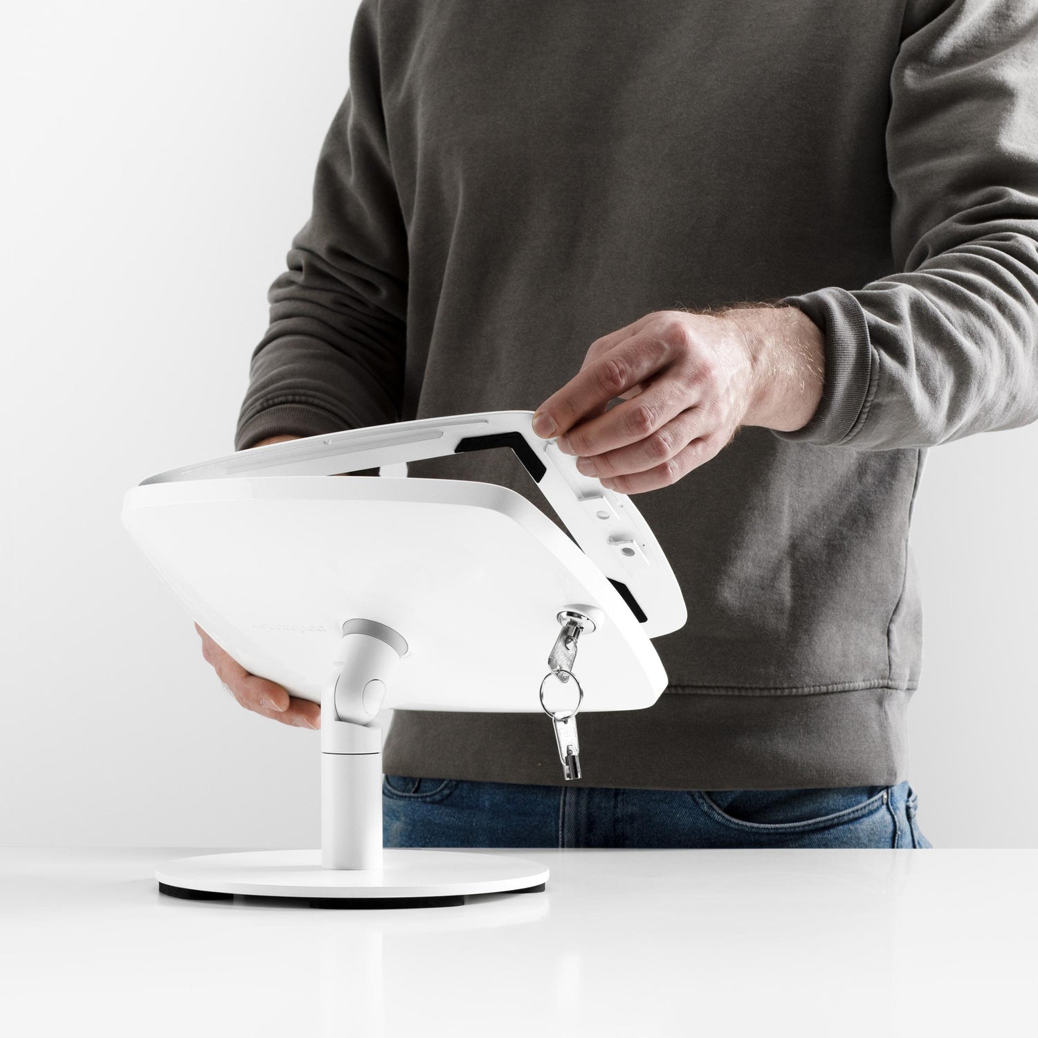 The Bouncepad Original Twist-Mini is a compact tablet mount, designed for high countertops and customer-facing environments where space is limited.