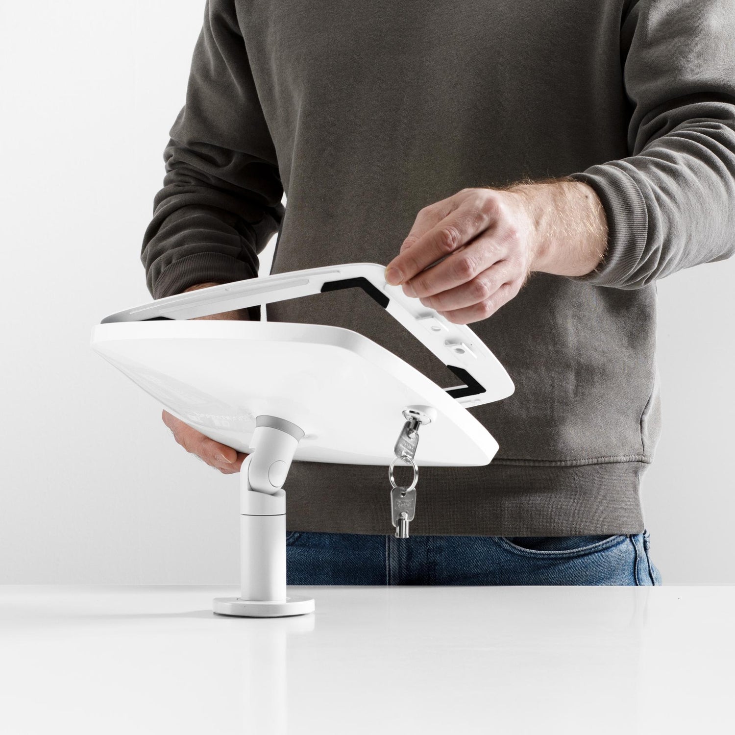 The Bouncepad Original Twist-Mini is a compact tablet mount, designed for high countertops and customer-facing environments where space is limited.