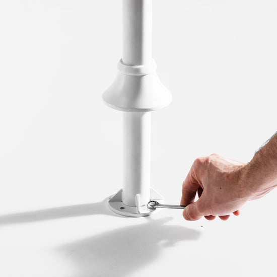 Slim, strong, and compact base designed for permanent fixing to the floor.