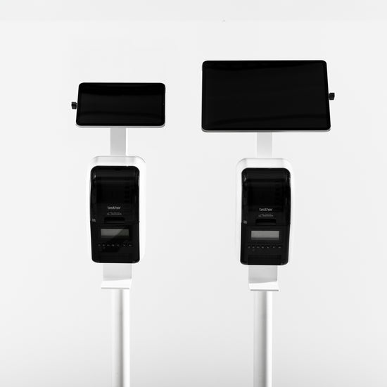 - Easy printing with a built-in Brother QL-820NWB, QL-820NWBc and QL-810W printer mount for ticketing, check-ins, and click-and-collect.