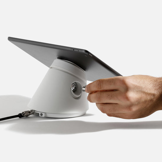 Click keeps your tablet secured and charged, undocking at the press of a button. You can also lock down Click with its lock and key system to disable the quick release button, securing your tablet or iPad in place.