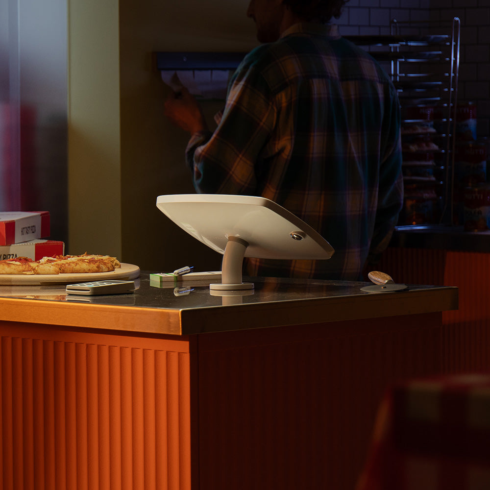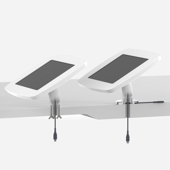 The Bouncepad Original Desk is a secure, low-profile tablet and iPad mount ergonomically designed for easy interaction when mounted to a counter, table or desk, perfect for digital signage and visitor registration.