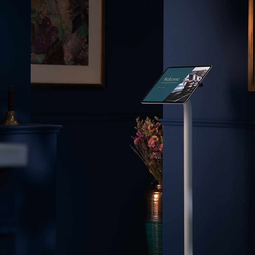 Our Core Range mounting system displays your tablet in all its glory, for a sleek and minimal aesthetic. The large 3M adhesive pad keeps your tablet secure whilst the included 180 degree USB-C power cable keeps your tablet charged. An integrated cable grip stops users removing the power cable, ensuring a charged device at all times. And, depending on your content, you can mount your tablet in portrait or landscape orientations.
