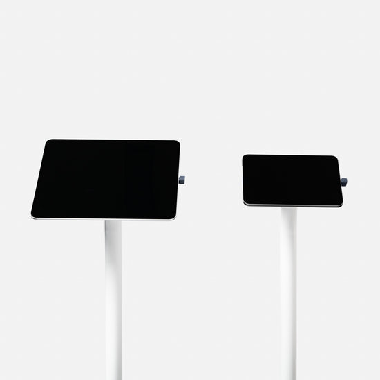This tablet floor stand is compatible with all USB-C tablets big and small, from the iPad Mini to the iPad Pro. Looking for an enclosed solution? Click here.