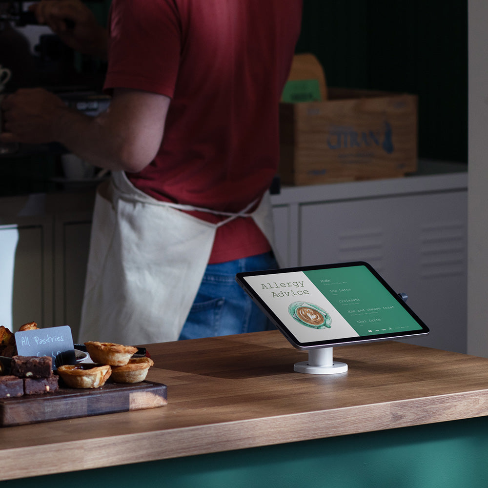 Ideal for typing, install this tablet and iPad mount on a low counter for seamless interaction.