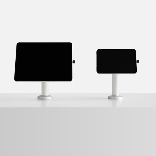 This tablet and iPad kiosk is compatible with all USB-C tablets big and small, from the iPad Mini to the iPad Pro. Looking for an enclosed solution? Click here.