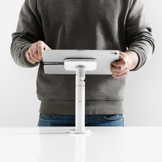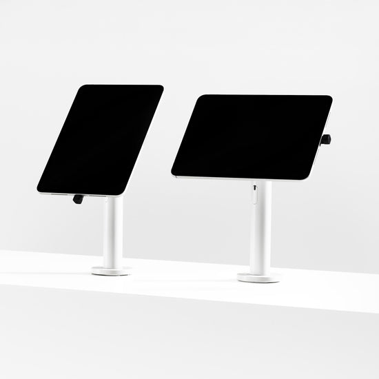 The Bouncepad Core Twist is a modern, minimal tablet and iPad mount designed for low-level countertops in customer-facing spaces.