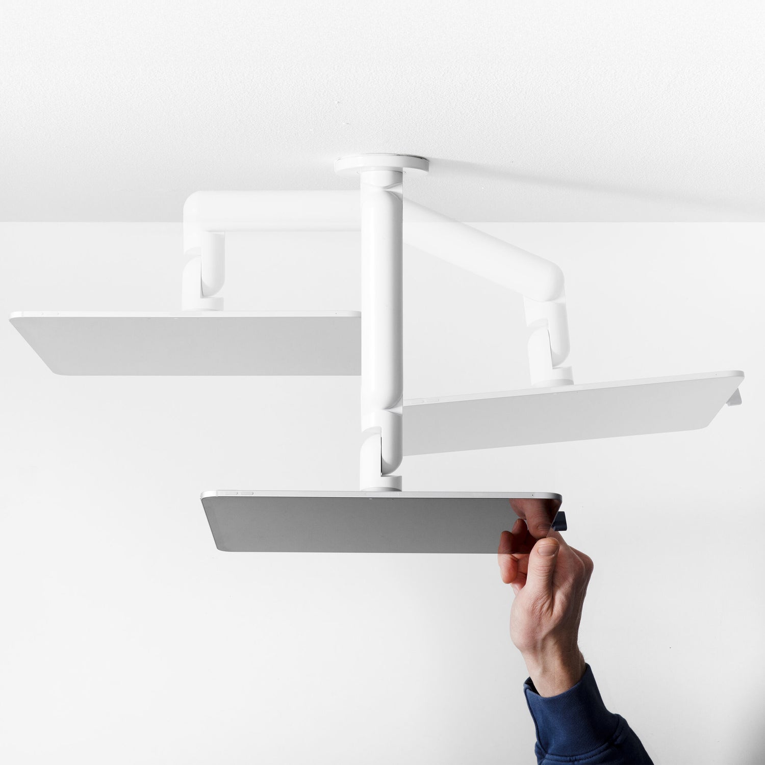 Easily swing and pan the tablet to position it exactly where it's needed, then fold it back to save space.