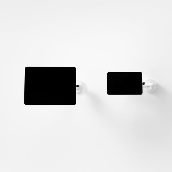Bouncepad Wallmount - A secure tablet & iPad wall mount in white.Bouncepad Wallmount - A secure tablet & iPad wall mount in black.